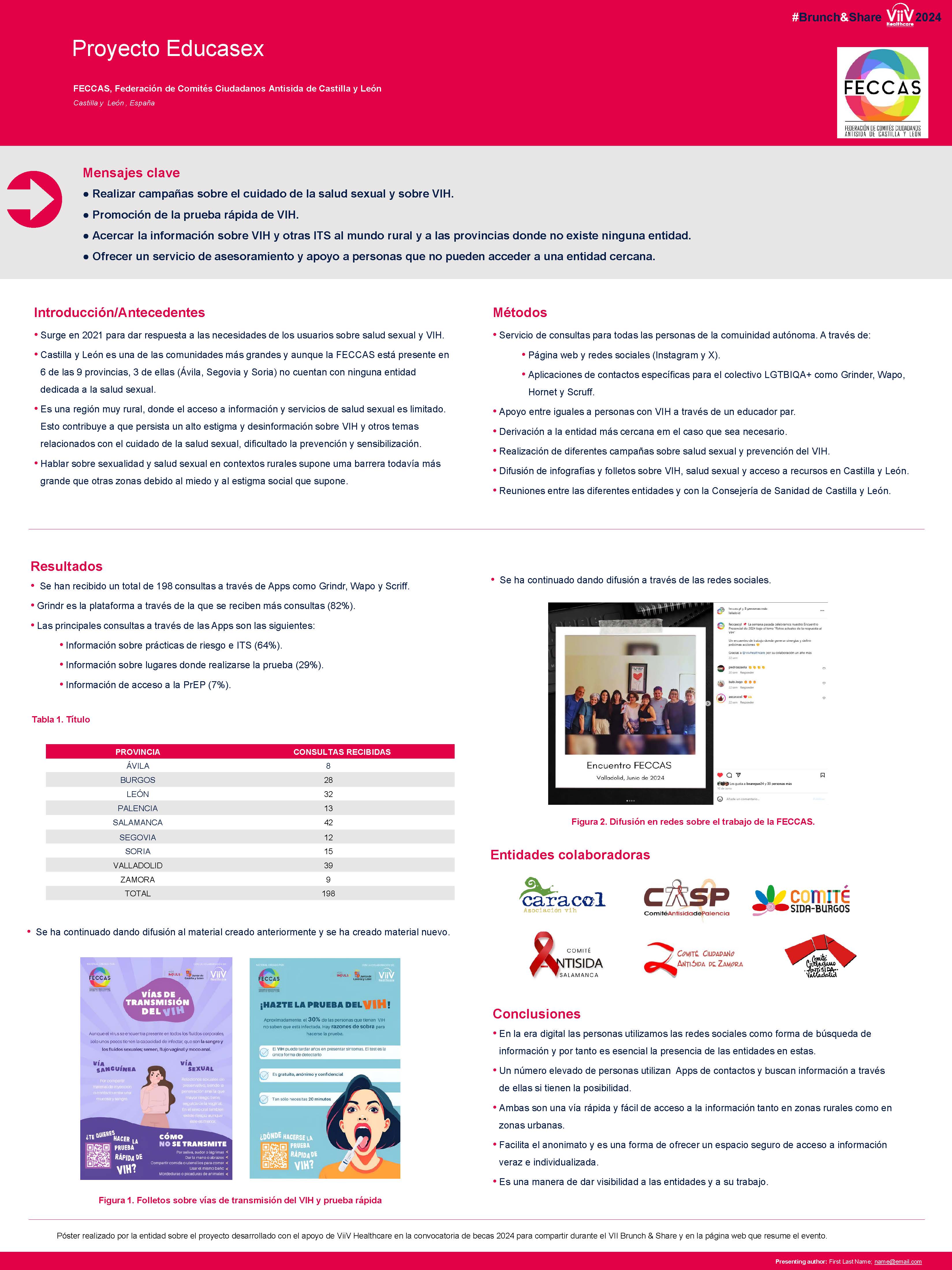 - Póster presentado en el XVI Congreso Nacional sobre el Sida, celebrado en Barcelona del 29 de septiembre al 2 de octubre de 2013