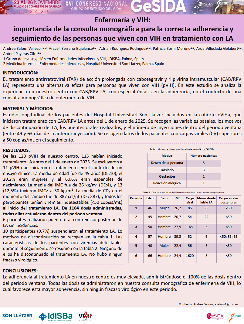 - Póster presentado en el X Congreso Nacional Gesida celebrado del 6 al 9 de noviembre de 2018 en Madrid.