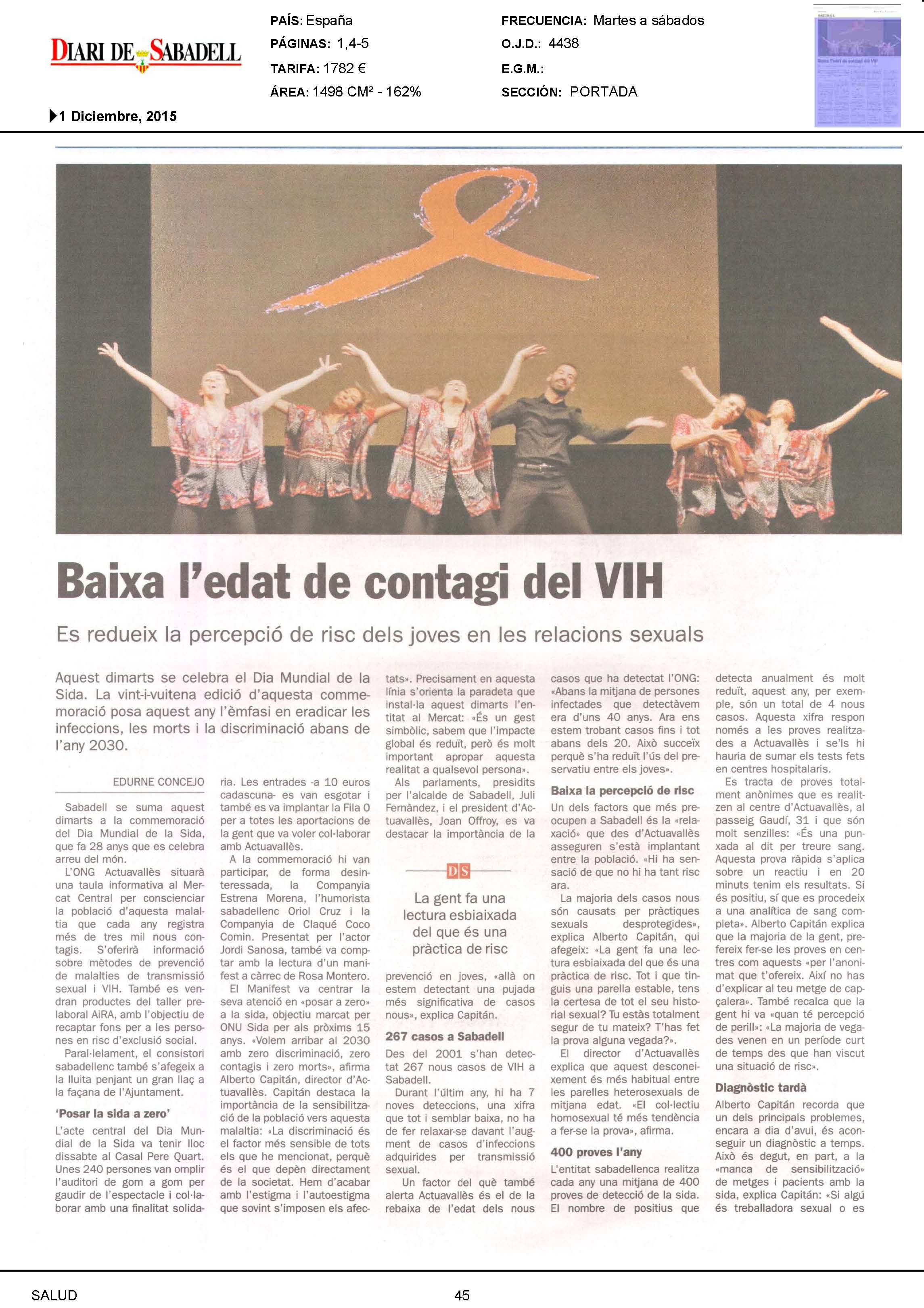 Cada any hi ha a Sabadell entre 30 i 40 contagis per VIH