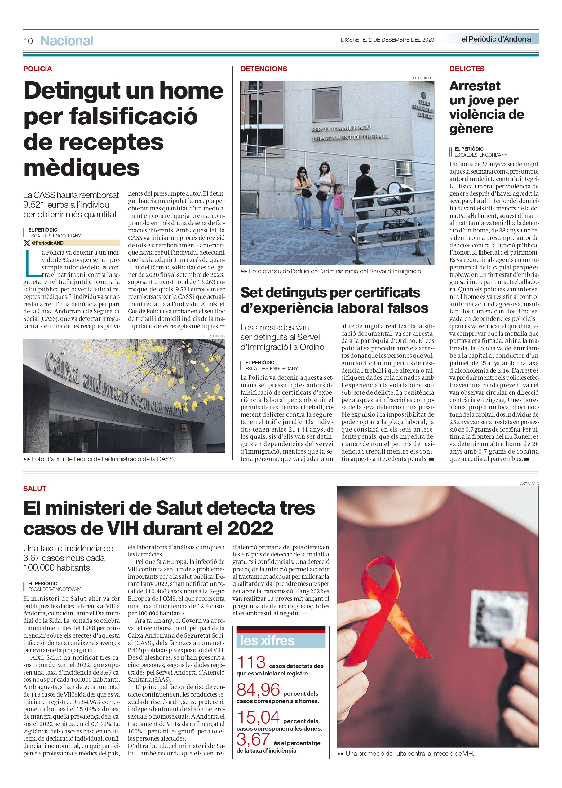 El ministeri de Salut detecta tres casos de VIH durant el 2022
