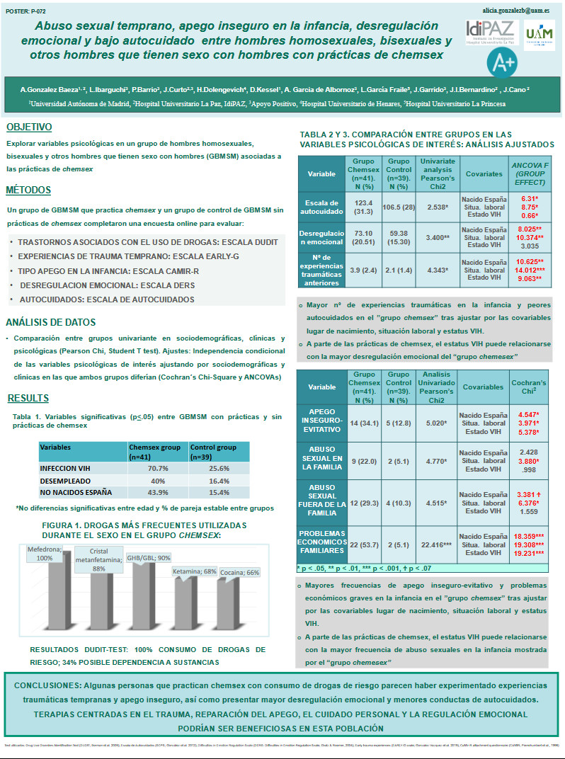 Abuso sexual temprano, apego inseguro en la infancia, desregulación emocional entre hombres homosexuales, bisexuales y otros hombres que tienen sexo con Hombres con prácticas de chemsex