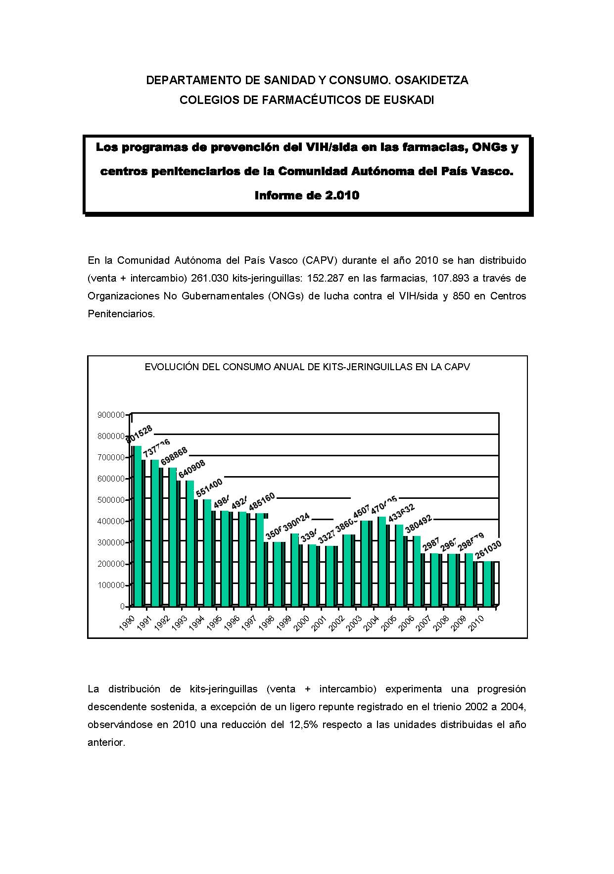 Los programas de prevención del VIH/sida en las farmacias, ONGs y centros penitenciarios de la Comunidad Autónoma del País Vasco. Informe de 2010