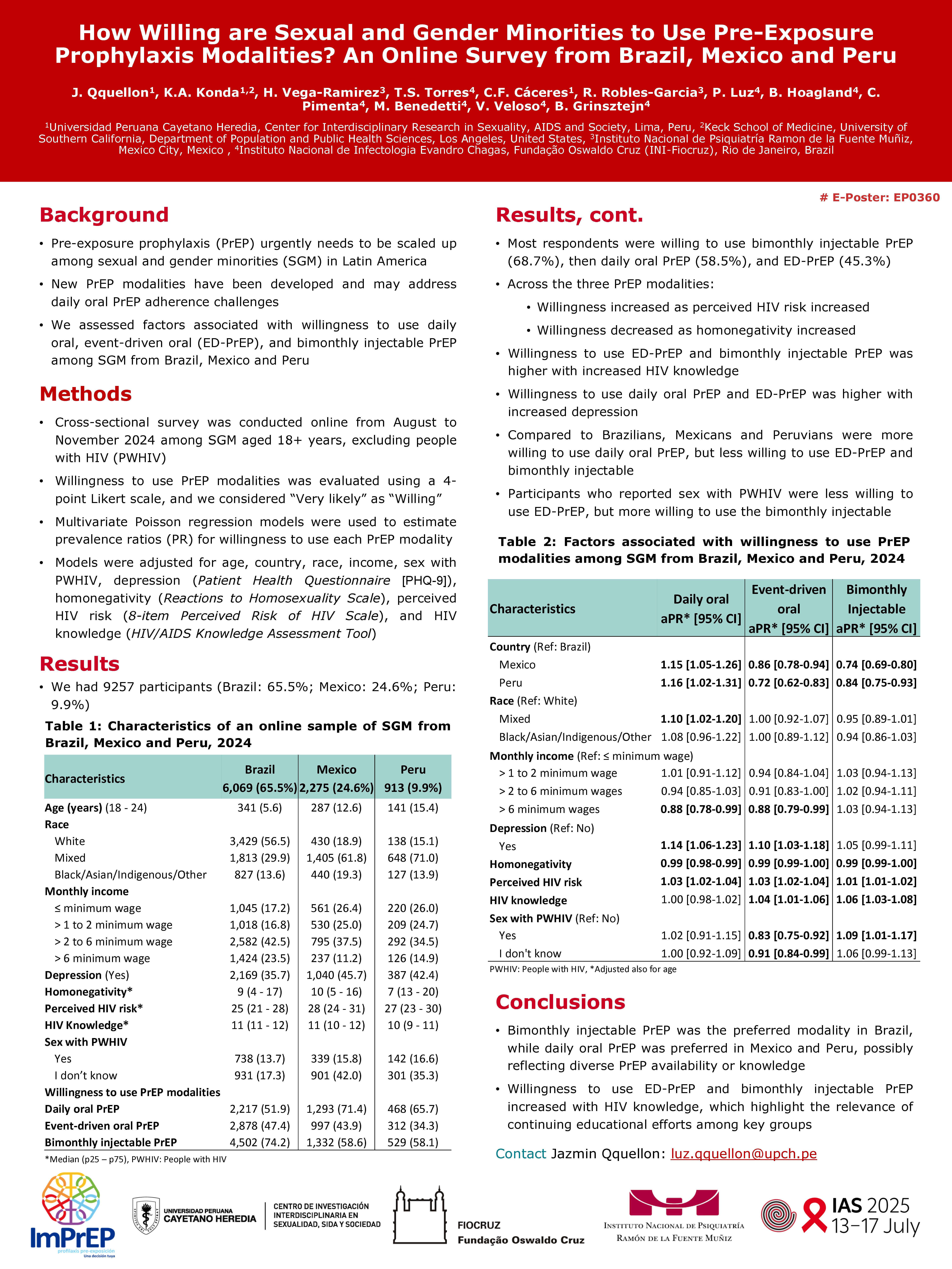 Póster presentado en la 12th Internatioal AIDS Conference on HIV Science celebrada del 23 al 26 de julio de 2023 en Brisbane, Australia.
