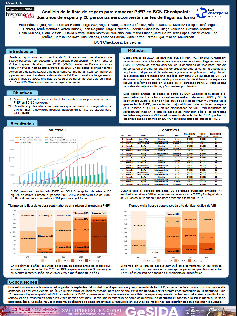 Análisis de la lista de espera para empezar PrEP en BCN Checkpoint: dos años de espera y 20 personas seroconvierten antes de llegar su turno